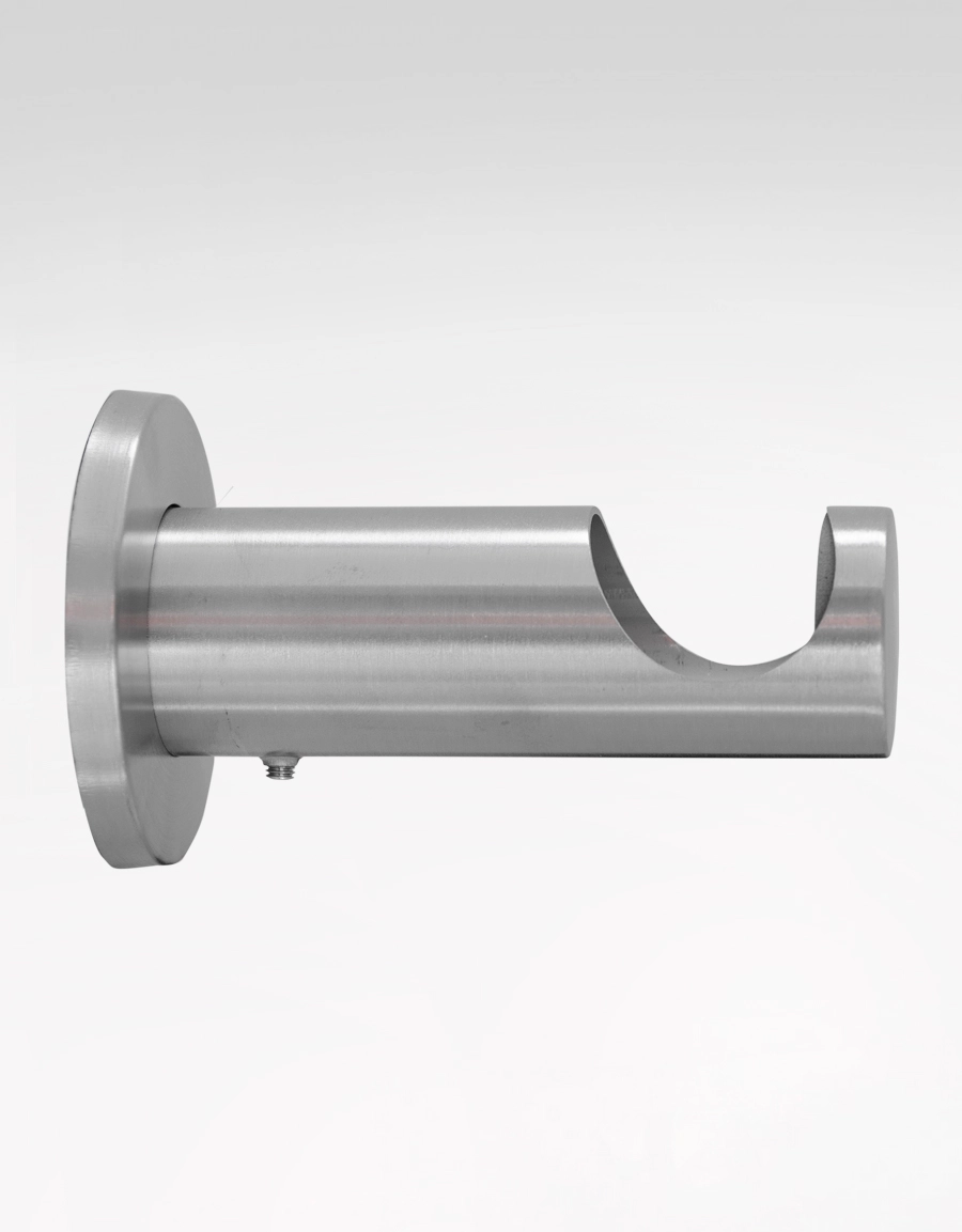 Väggfäste Point i rostfritt stål eller svart. Fästet är 8 cm och passar för gardinstänger med diametern 11/13 eller 26/28 mm.